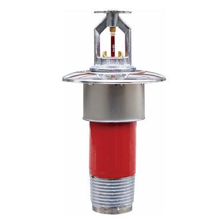 檐口式水幕噴頭用于防止鄰近建筑物發(fā)生火災(zāi)時(shí),對(duì)屋檐的威脅或增加屋檐的耐火能力而設(shè)置的向屋檐灑水的水幕噴頭。